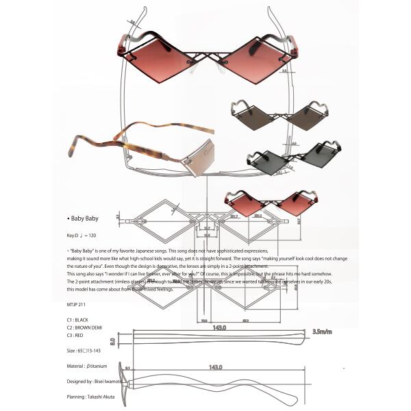 カラー C2 BROWN DEMI Baby Baby ¥ 61,600 レンズは全て、サングラスレンズが搭載されています。 本商品には、外箱、ハードケース、ソフトケース、クリーニングクロスが付属します。 Baby Baby ¥ 61,600 レンズは全て、サングラスレンズが搭載されています。 本商品には、外箱、ハードケース、ソフトケース、クリーニングクロスが付属します。