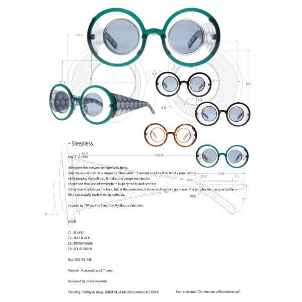 モデル名のイメージ通り不眠を連想するような円を連ねたデザイン、実物を見て初めて構造を理解出来る一見奇怪ともいえるデザインの具現化には脱帽、意外とシンプルな構造でした。奇怪でもあり可愛らしくもある外しのお洒落として非常に優秀な逸品