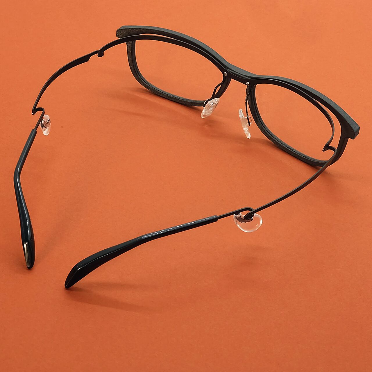 サイズ 53□16 “design88”-石彫シリーズ ①0.6mmステンレスシート材をハンドメイドの曲げ加工で蝶番が無いテンプル(ウデ)デザインを採用しています。その掛け心地は快適そのものです。 ②トレンド感あるフロントには新素材・カーボンとナイロンの超軽量の混合樹脂「人工御影石」を使用しています。 ③ズレないメガネを目指し考え出された第三のパッド“NQTパッド”を採用しています。 ◆材質 フロント:人工御影石 テンプル:ステンレス ノーズパッド:シリコーン NQTパッド:ニュクレル イヤーパッド:CP ◆付属品 専用ソフトケース ◆レンズにはプラスチックのデモレンズを搭載しています。 度付きレンズをご希望の方はお近くの眼鏡店にご相談をお願いいたします。 ☆まずは“人工御影石”を見て欲しい☆ アセテートやチタン、ナイロン系など今までのどの素材とも異なる新たな質感。 それは顔に掛けると驚くほどなじみがよく、アセチの黒の様な悪目立ちは一切ありません。 “人工御影石”の特徴は軽量・耐熱対傷に加えて、優れた弾性など現時点で樹脂を使ったメガネには最適な素材です。 耐熱は180度程度、耐傷は600番の紙ヤスリでもほぼ傷がつかない素材になりました。 ☆さぁ、“NQTパッド”を試そうではないか☆ どんなに素晴らしいフィッテイングや構造・素材も鼻と耳で支える構造の眼鏡は絶対にズリ下がります。例えば、モダン先に重りをつけたり、テンプルを長くしたり、モダンや鼻パッドにタイヤの様なミゾを入れたり、形や素材を工夫したりと色々やってきましたが、やはりズレます。 そこで支える点を一ヶ所増やせばズレないのではないか?そんな単純な思い付きから生まれたが“NQTパッド”です。完成までに開発に4か月、そしてリサーチ一年を費やしました。 1年のリサーチの結果、痛みや炎症は全く有りません。それどころかズレるメガネより痛みは無いと感じました。考えてみれば当たり前です。今まではズレない様に鼻と耳を締め付ける様にフィティングしていたので痛くなるのは当たり前です。ところが“NQTパッド”は締め付けていません。“NQTパッド”で通常のフィティングではタイト過ぎます。悪い言い方ですが適当でいいんです。コレで案外ズレない。 そして最大の驚きは「ズレないメガネってこんなに楽なんだ!」と言う体感です。 ただし、NQTパットにも欠点が有ります。 パッドはこめかみに触れていなければその効果は発揮できません。 頭が小さい方や頭の断面が砲弾型(魚型)の様な方は残念ですが、NQTパッドの恩恵は受けられません。 ※頭部の推奨寸法はこめかみ間で135mm~155mm程度です。